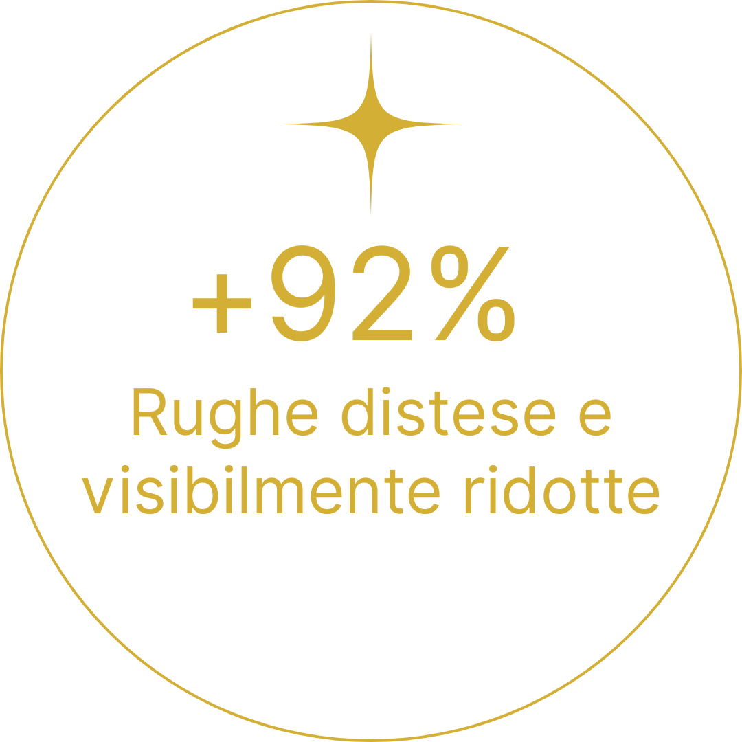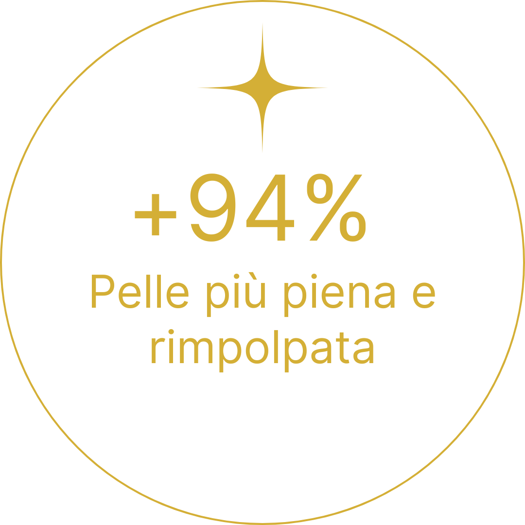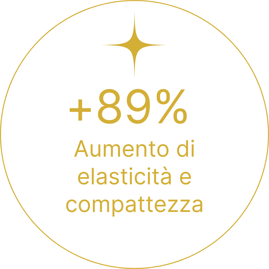 Le molecole di collagene ultra-piccole (120 Da x 2,000,000 ppb) contenute nei filamenti dorati, vengono assorbite profondamente dalla pelle, migliorando elasticità, compattezza e texture.