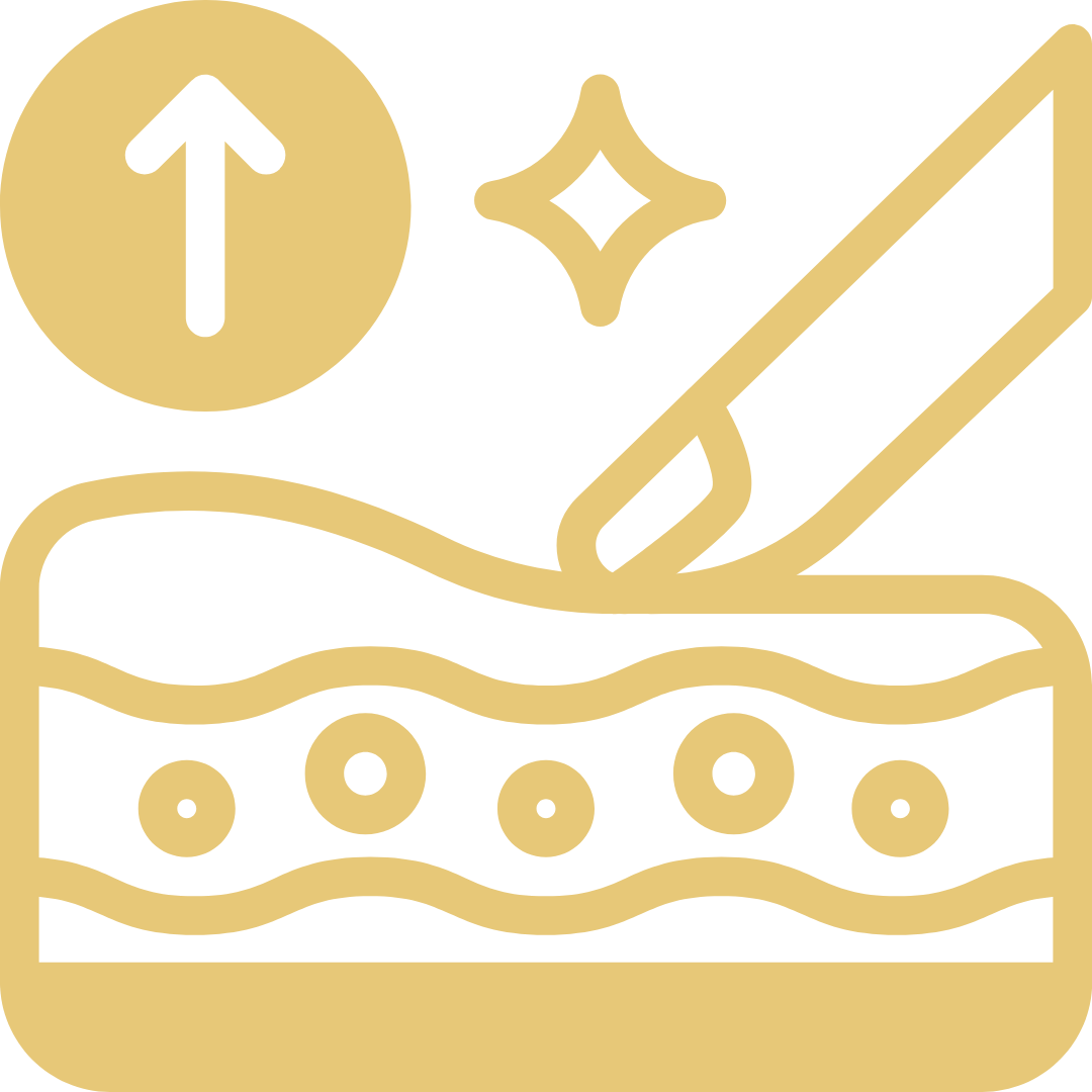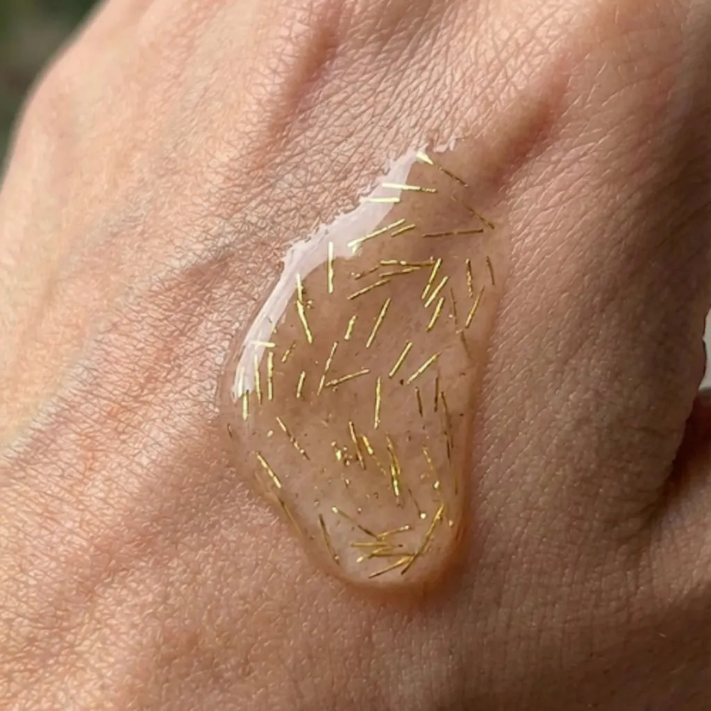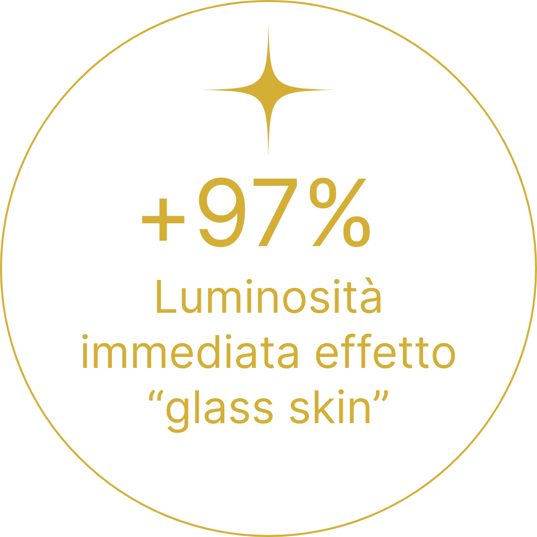 Le molecole di collagene ultra-piccole (120 Da x 2,000,000 ppb) contenute nei filamenti dorati, vengono assorbite profondamente dalla pelle, migliorando elasticità, compattezza e texture.